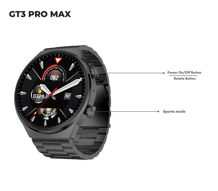 ساعت هوشمند جی تب G-Tab GTX دارای صفحه نمایش AMOLED-SEMI با سایز 1.43 اینچ می باشد امکانات ساعت هوشمند جی تب G-Tab GT3 PROMAX ساعت هوشمند جی تب G-Tab GT3 PROMAX دارای چندین حالت ورزشی می باشد و همچنین قابلیت کنترل موسیقی از طریق ساعت امکان پذیر می باشد. دارای حالت های مختلف آب و هوا می باشد سایر امکانات این مدل شامل آلارم خواب، امکان جواب یا رد تماس از طریق ساعت، ماشین حساب و غیره می باشد. باتری ساعت هوشمند جی تب G-Tab GT3 PRO MAX این ساعت هوشمند دارای باتری 300mAh می باشد.